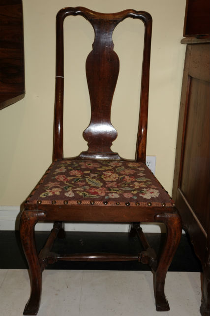 Very early English chair in Chinese taste. Lovely slipper foot and needlepoint upholstery. SOLD Purchased Price $495
